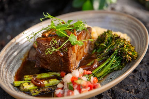 SIGNATURE DISHES:Hawai'i beef Loco Moco GF Braised beef short ribs & Okinawan sweet potatoes GF Huli Huli chicken Whole crispy fish Bruleed Maui onion cheeseburger Accompaniments: |